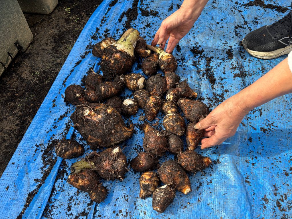 一株で収穫できた田能芋です。親芋、子芋あわせて約30個。園北ファームのスタッフさんによると、畑でとれるものより大きいらしく無事収穫できホッとしました。