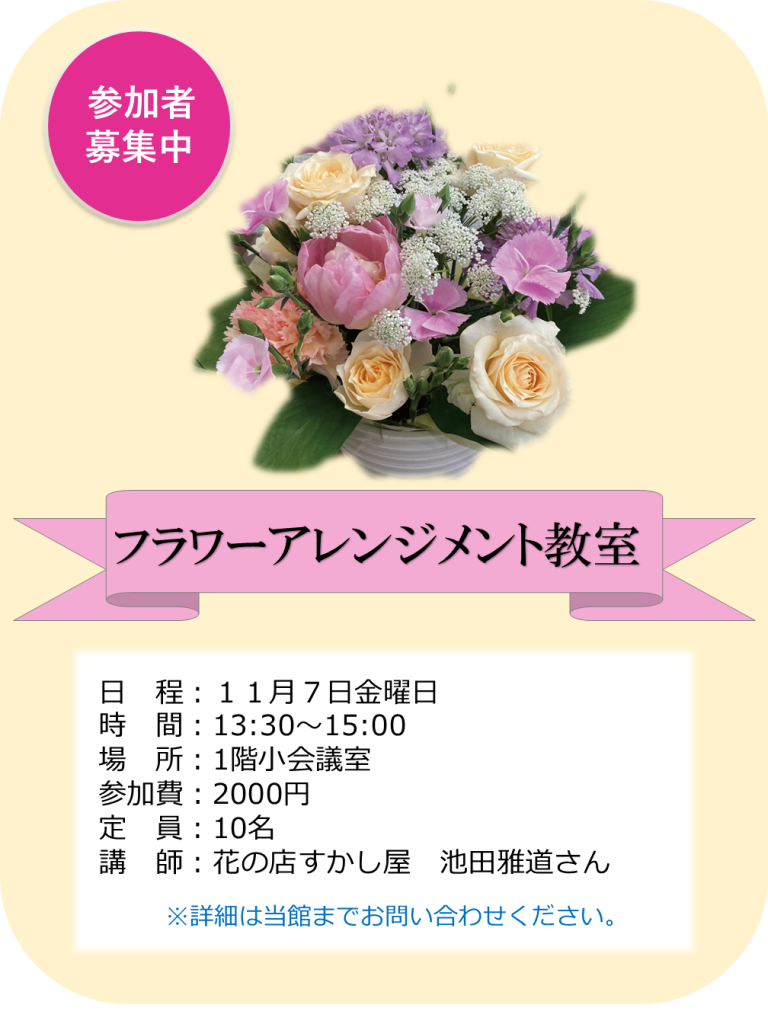 11月7日(金)にフラワーアレンジメント教室を開催します。