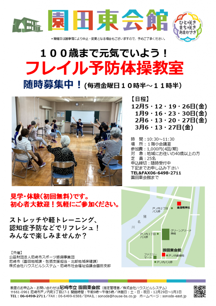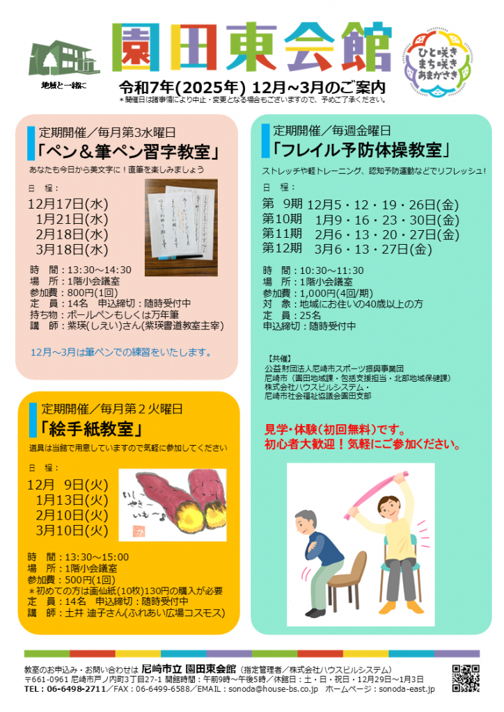 問合せ:園田東会館06-6498-2711または受付窓口まで